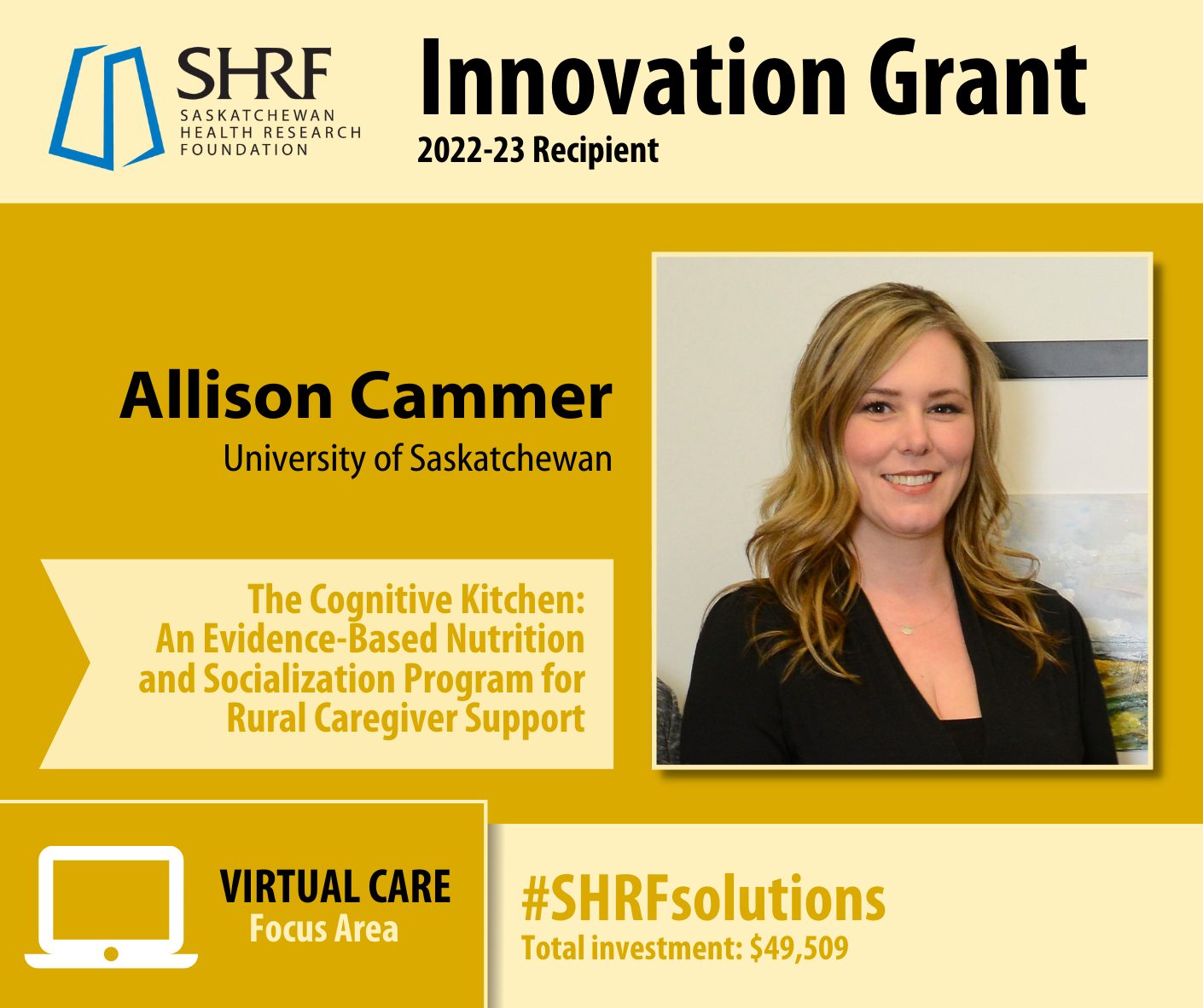 RaDAR investigator, Dr. Allison Cammer, receives a Saskatchewan Health Research Foundation Innovation Grant
